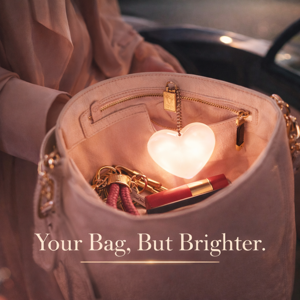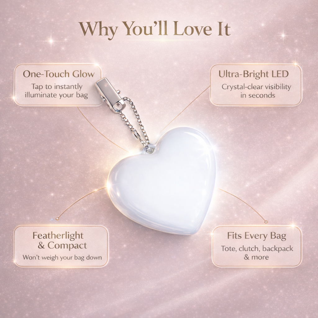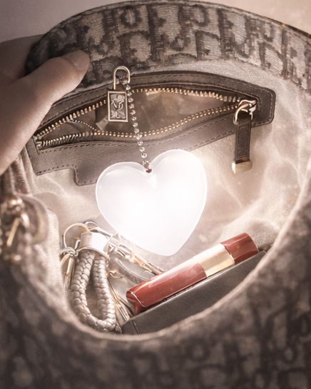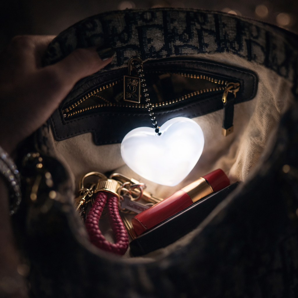 Just a gentle tap! The Heart Beam features an advanced touch-sensitive sensor that activates the light instantly when you reach into your bag. No more fumbling for tiny switches in the dark—just immediate illumination right when you need it most to find your essentials.